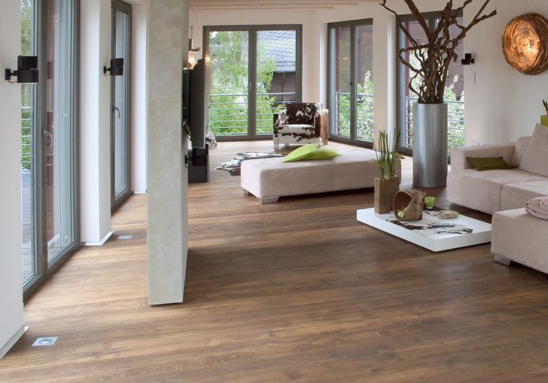 Ob Holz, Naturstein oder Fliesen – Designböden sehen echt aus und sind dank innovativer Druck- und Prägetechnik auch beim Auftritt von ihren natürlichen Vorbildern kaum zu unterscheiden. Neben der attraktiven Optik sind es die besonderen Materialeigenschaften, die Designböden so beliebt machen. Der spezielle Materialaufbau aus heterogenem Vinyl macht die Böden strapazierfähig, feuchtigkeitsunempfindlich und bietet im Gegensatz zu Echtholz- und Steinmaterialien eine geringe Aufbauhöhe von 2 bzw. 2.5 mm. Designböden sind für Fußbodenheizungen (bis 27 °C), sowie für Stuhlrollen geeignet.